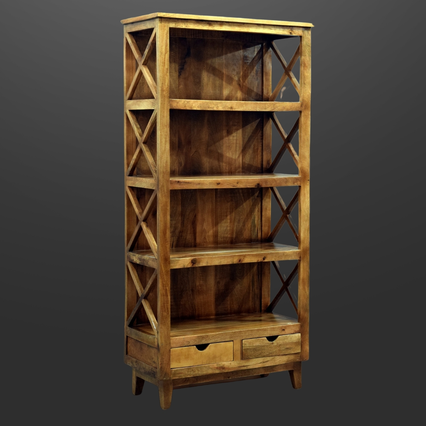 Add timeless elegance and smart storage to your space with this handcrafted mango wood open bookshelf. Featuring four sturdy shelves and two bottom drawers, it's perfect for showcasing books, plants, or décor while keeping clutter hidden.