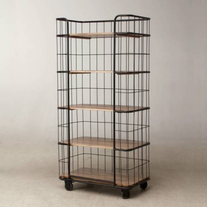 Industrial metal frame with wooden shelves and wheels—this trolley is perfect for stylish storage with mobility.