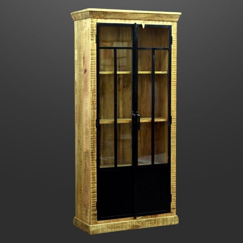 Elegant tall wooden cabinet with glass-panel doors and spacious shelves—perfect for showcasing décor or storing essentials with timeless style.