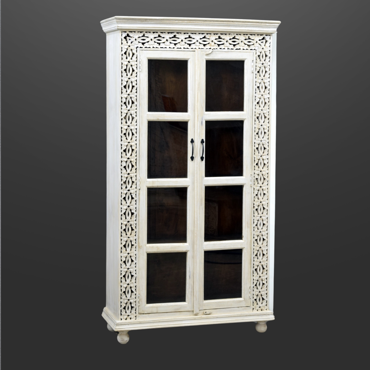 Hand-Carved White Display Cabinet with Glass Doors – Artisan Elegance